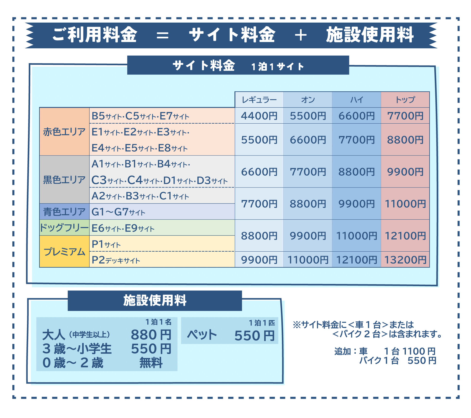 ・キャンピングカーでご利用いただけるサイトは指定サイトのみです。