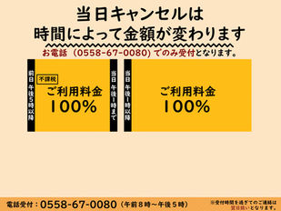 ・ご宿泊日の7日前から:段階的にキャンセル料が発生します。